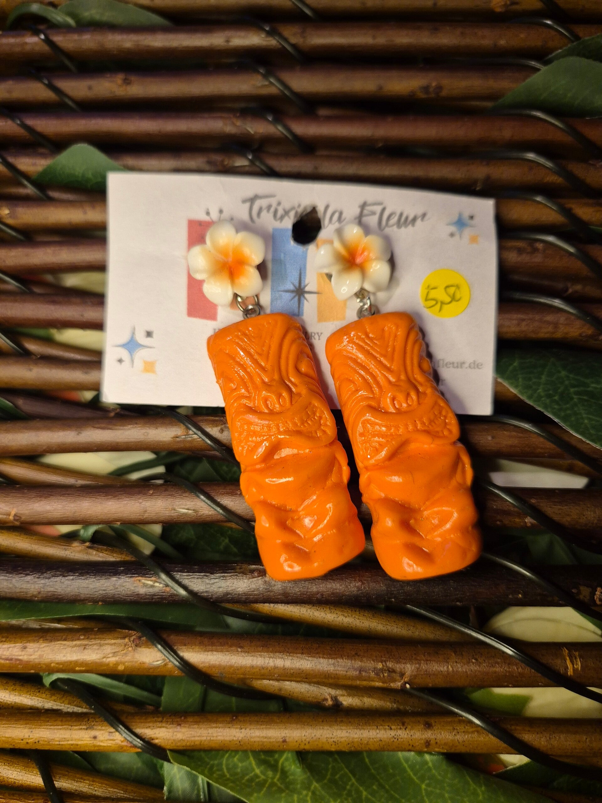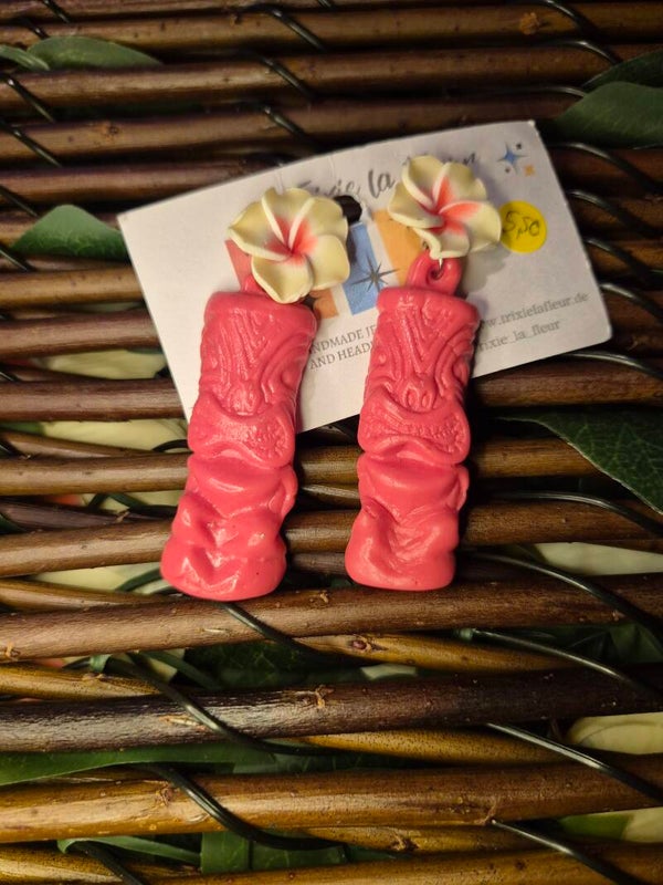 Große Tiki Ohrringe mit Hibiskus Ohrstecker