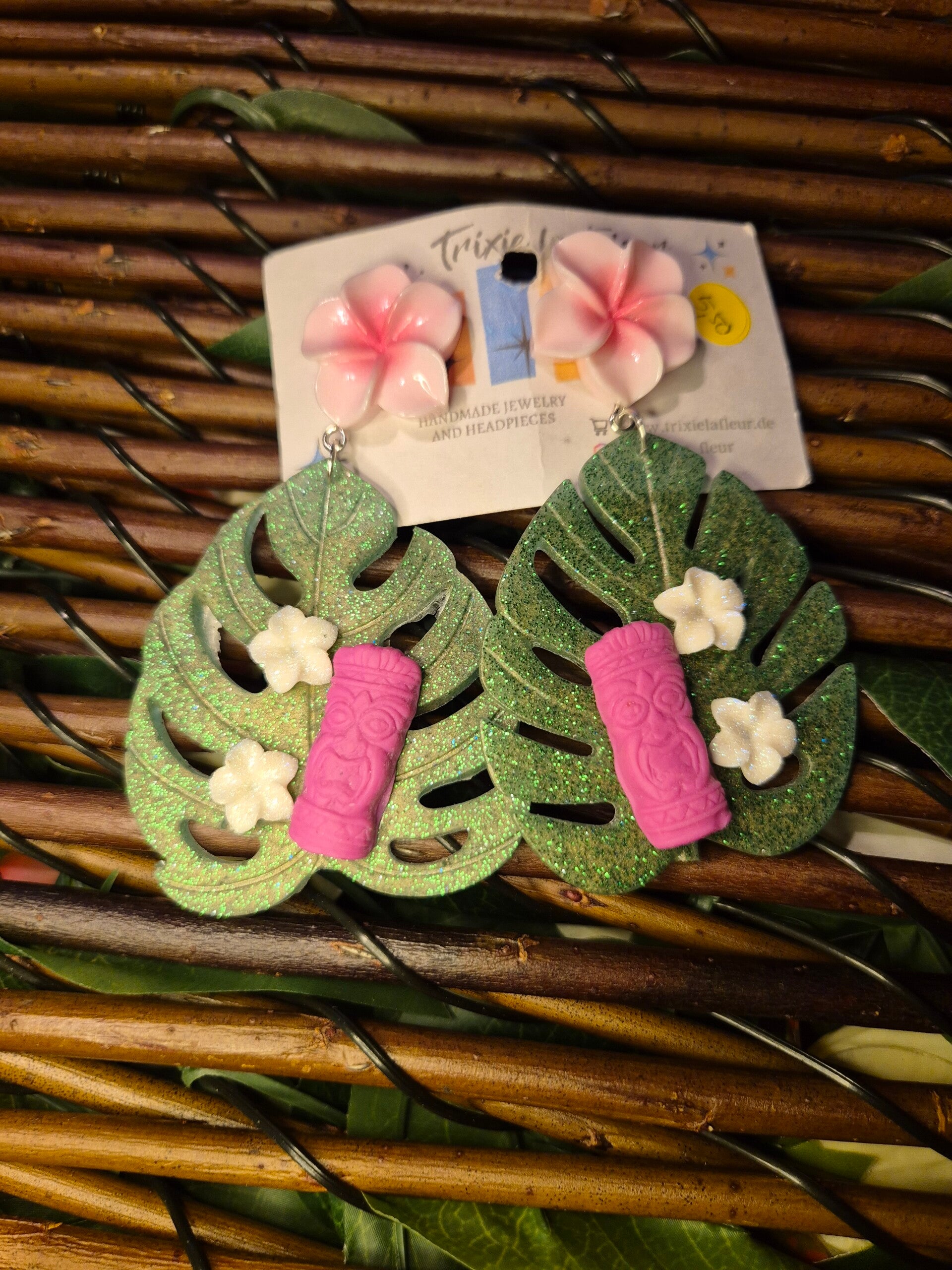 Große Ohrringe mit Monstera Anhänger aus Acryl