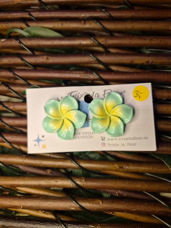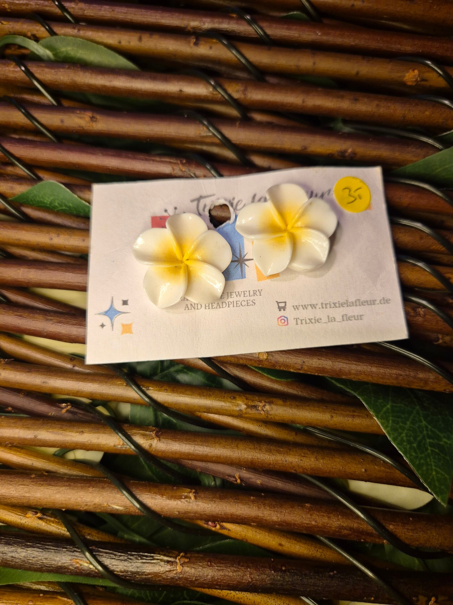 Schöne Ohrstecker aus Resin Harz in Hibiskus Blütenform.