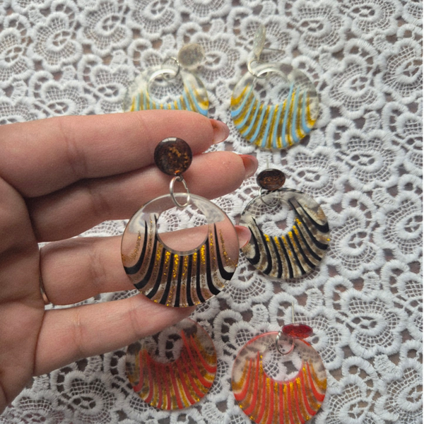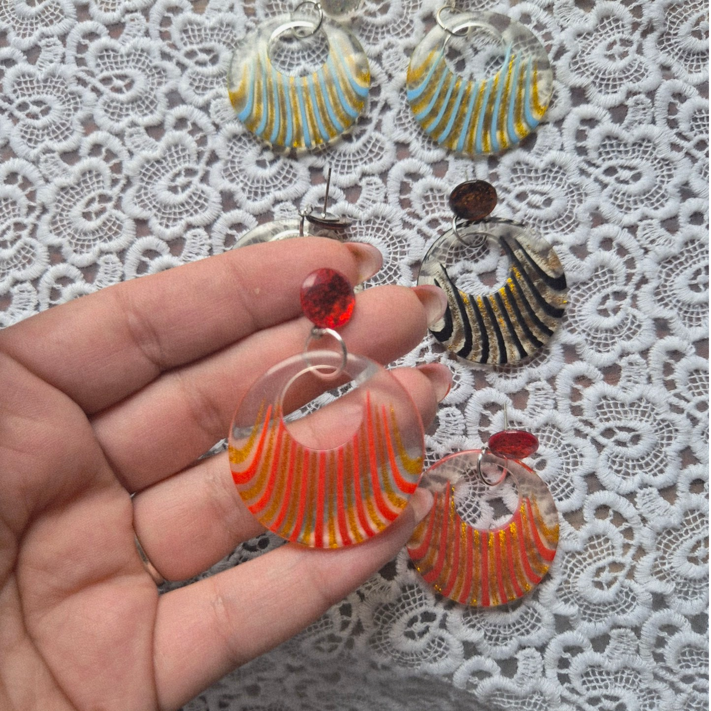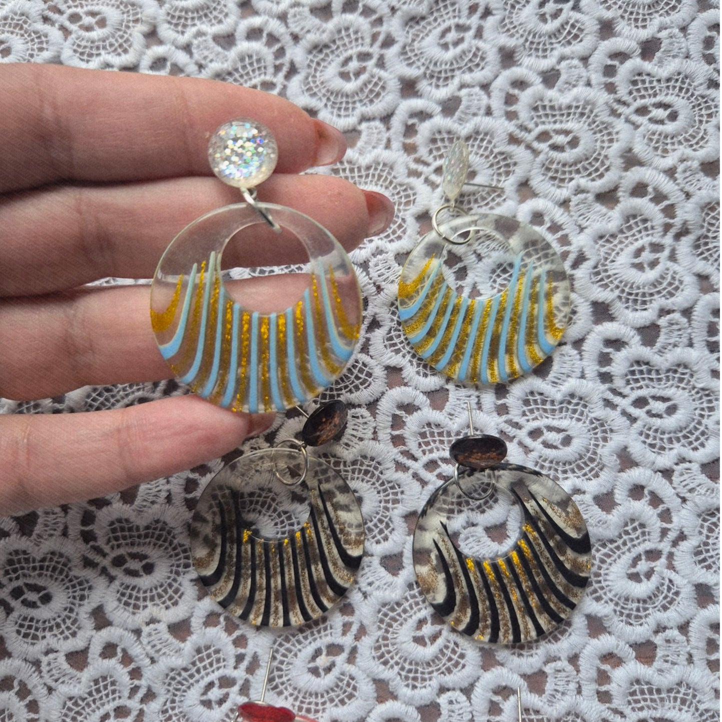Ohhringe aus Acryl mit gemalten wellenlinien