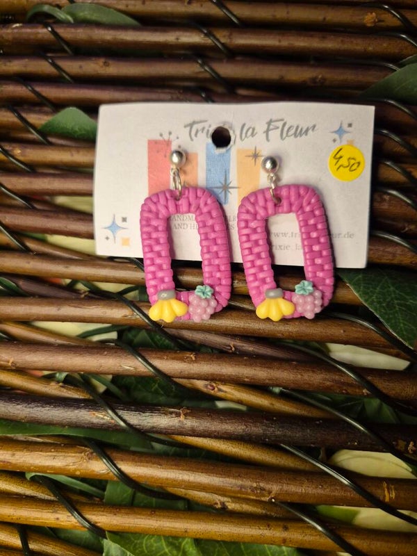 Niedliche Ohrringe aus Polymer Clay mit Frucht oder Blumen Dekor
